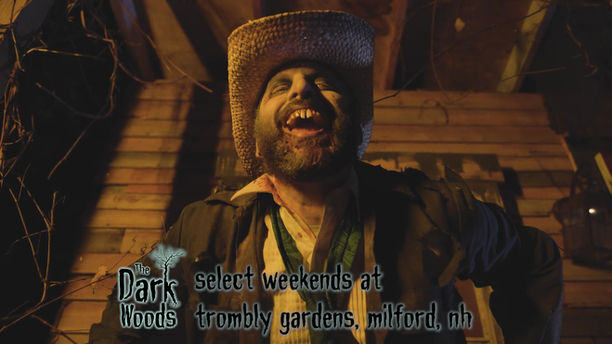 The Dark Woods is a haunted Halloween event located at Trombly Gardens in Milford, NH. Guests take a self-guided (walking) tour through a dimly-lit woodlands while being met by an unusual cast of creeps and misfits. The event celebrates the spirit of Halloween and is perfect for families, couples, and people of all ages.